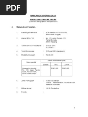 Contoh Kertas Kerja Perniagaan Produk Kesihatan